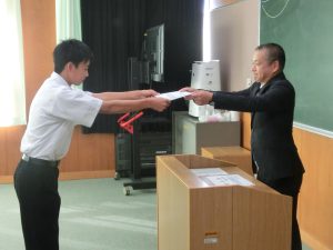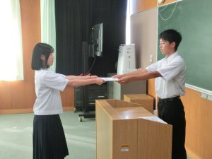 その後、生徒会長から各委員長へ任命証が手渡されました。