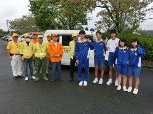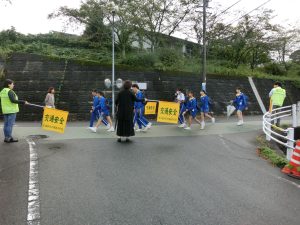 また、学校運営協議会の方には青パトによる巡回あいさつも行っていただきました。青パトには、生徒会執行部の生徒も同乗。生徒たちの「おはようございます。」の声が、マイクを通して地域に響いていました。