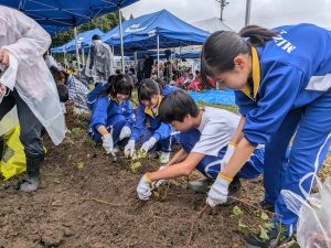 ボランティア活動の最後には、自分たちも芋ほりをすることができました。ボランティアとしての充実感と芋をほることができたという満足感からか、満面の笑みで芋を抱え、会場を後にする姿が印象的でした。