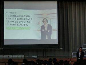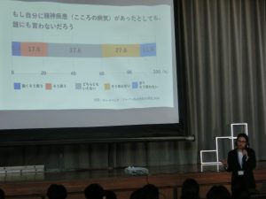 聖十字病院 精神保健福祉士 藤木誠様を講師としてお迎えし、「こころといのちを守るということ」を演題に、お話を伺いました。思春期の今だからこそ考えるべき必要のある内容に、前のめりになって話を聴く姿が印象的でした。