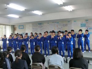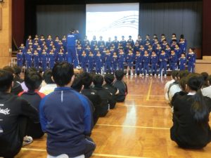 授業を参観した後は、1つ上の先輩による学校紹介と合唱披露。